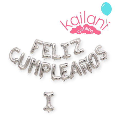 • GLOBO FRASE FELIZ CUMPLEAÑOS PLATEADO METALIZADO *1U